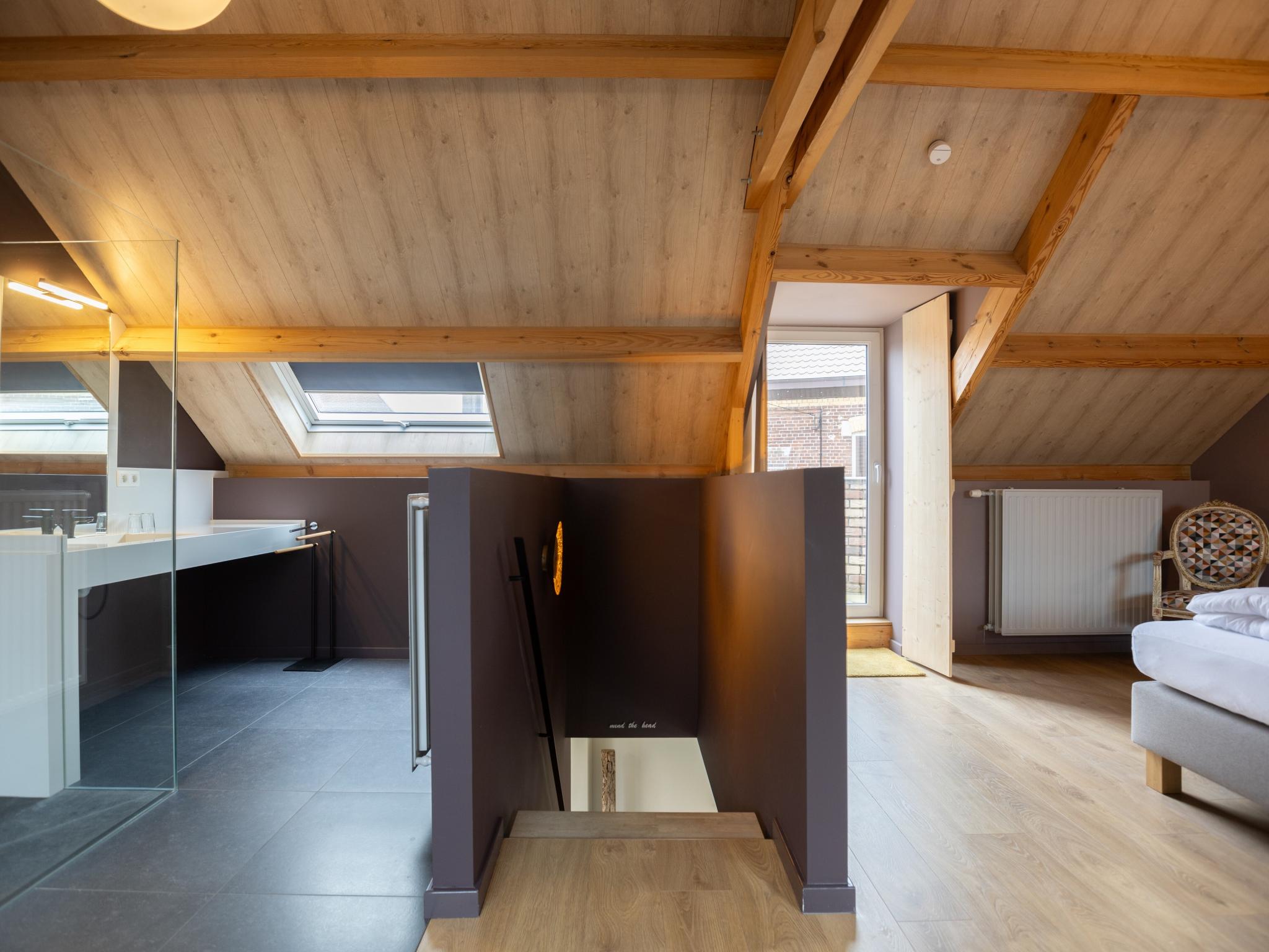 Op de 1e etage: (2x slaapkamer(2x 1-pers. bed(90 x 200 cm)), slaapkamer(2x 1-pers. bed(90 x 200 cm)), badkamer(douche, 2x wastafel, wc))