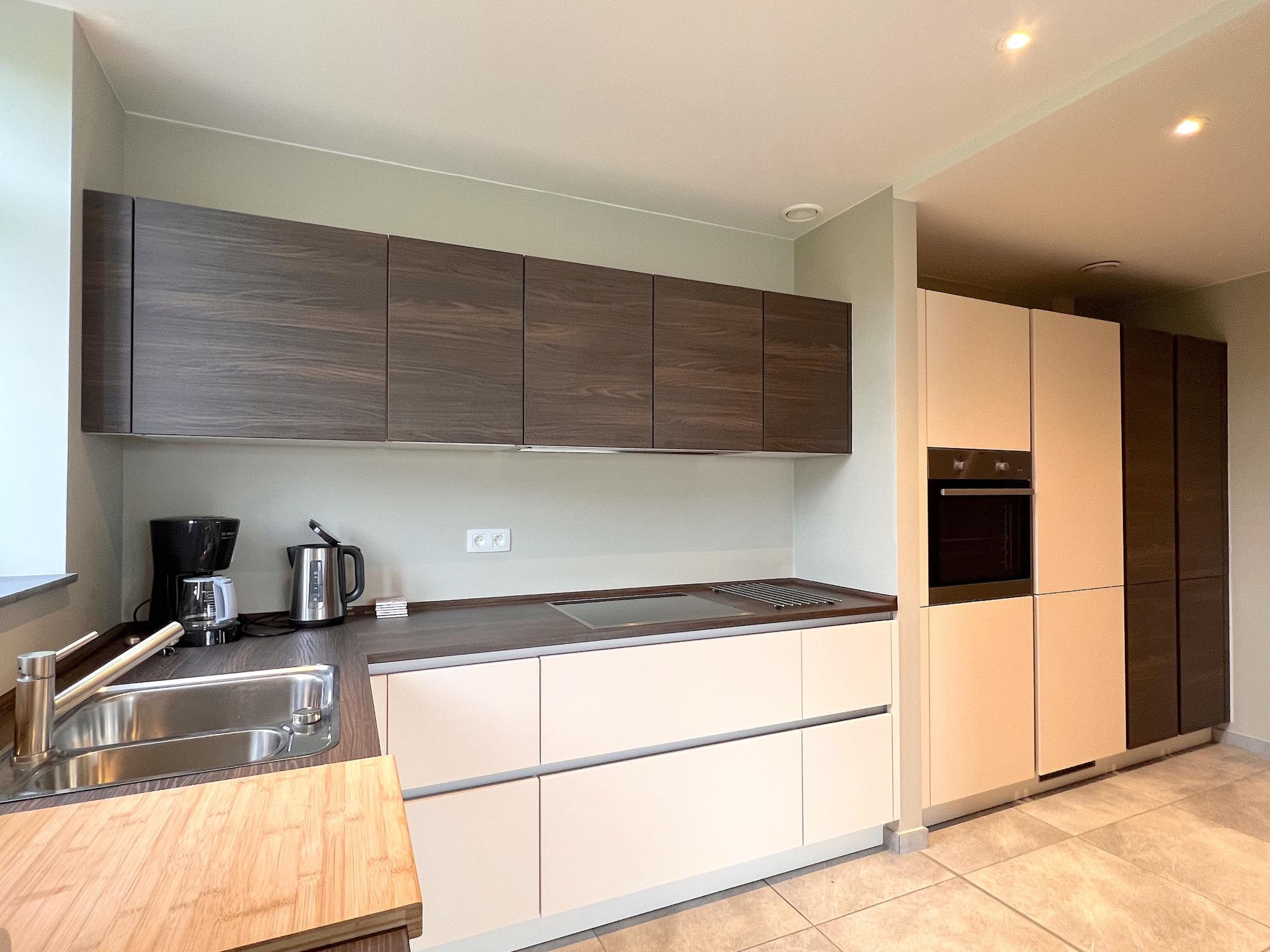 Begane grond: (hal(wc), open keuken(waterkoker, fornuis(4 kookplaten, keramisch), afzuigkap, koffiezetapparaat(filtermaling), oven, magnetron, koel-/vriescombinatie), woon/eetkamer(TV(digital), eettafel))